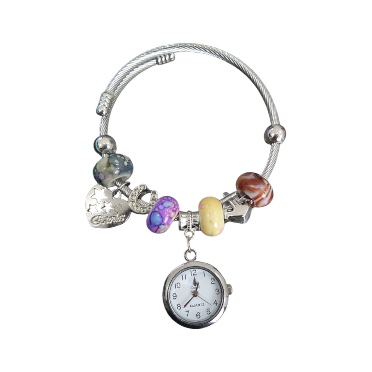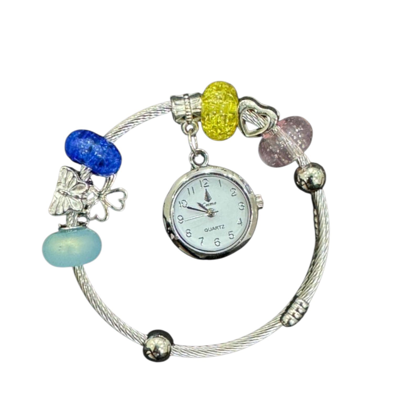 The Ladies Beads Bangle Watch is a perfect combination of elegant jewelry and a functional timepiece. Designed for women who appreciate stylish accessories, this bracelet-style watch features colorful decorative beads, charming accents, and a beautiful round dial that adds sophistication to any outfit.